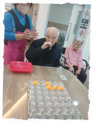탁구공을 계란판에 쏙 넣어보아요